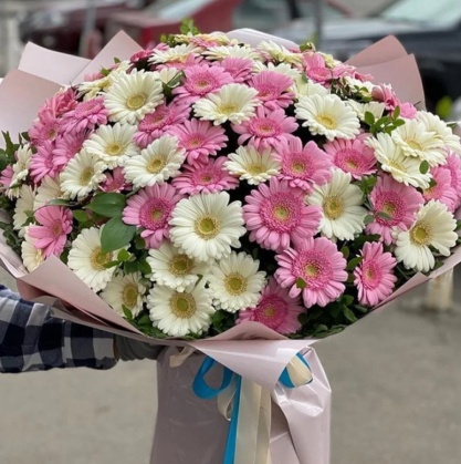 Букет из 101 белой и розовой герберой | Купить в Гомеле